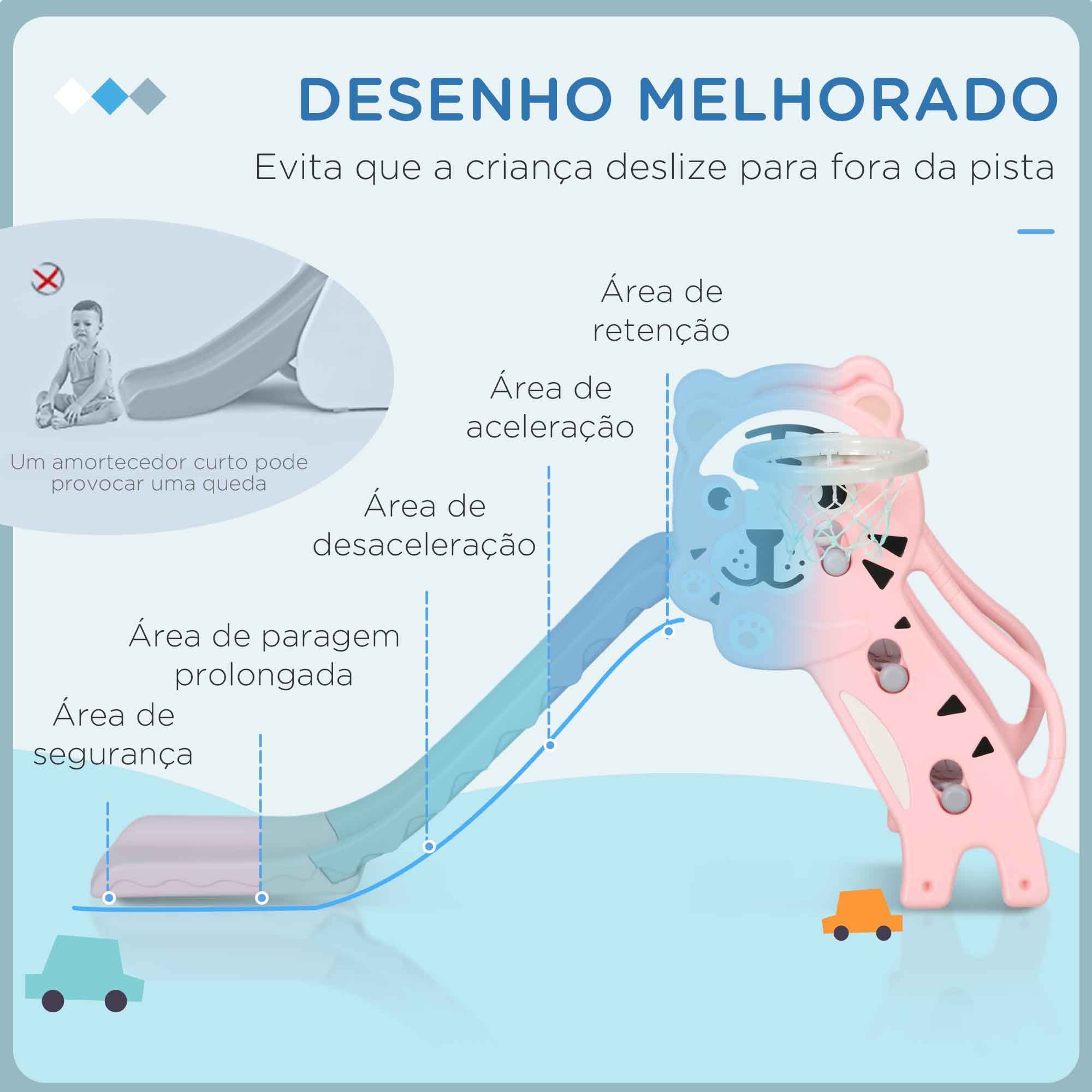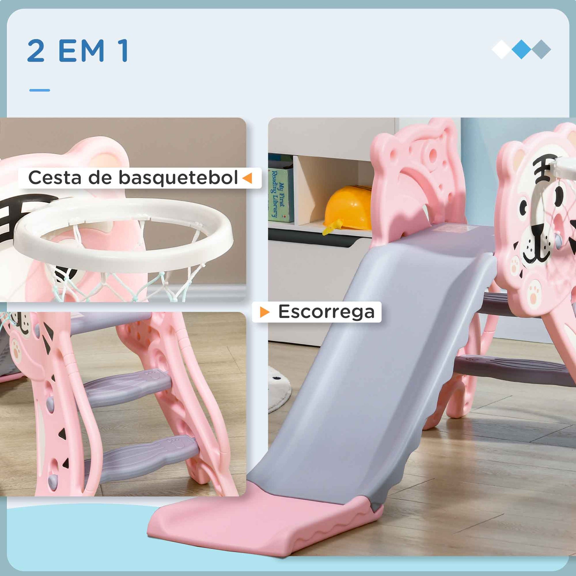 Escorrega para Crianças 2 em 1 com Cesta de Basquetebol - 133x60x70 cm - Rosa