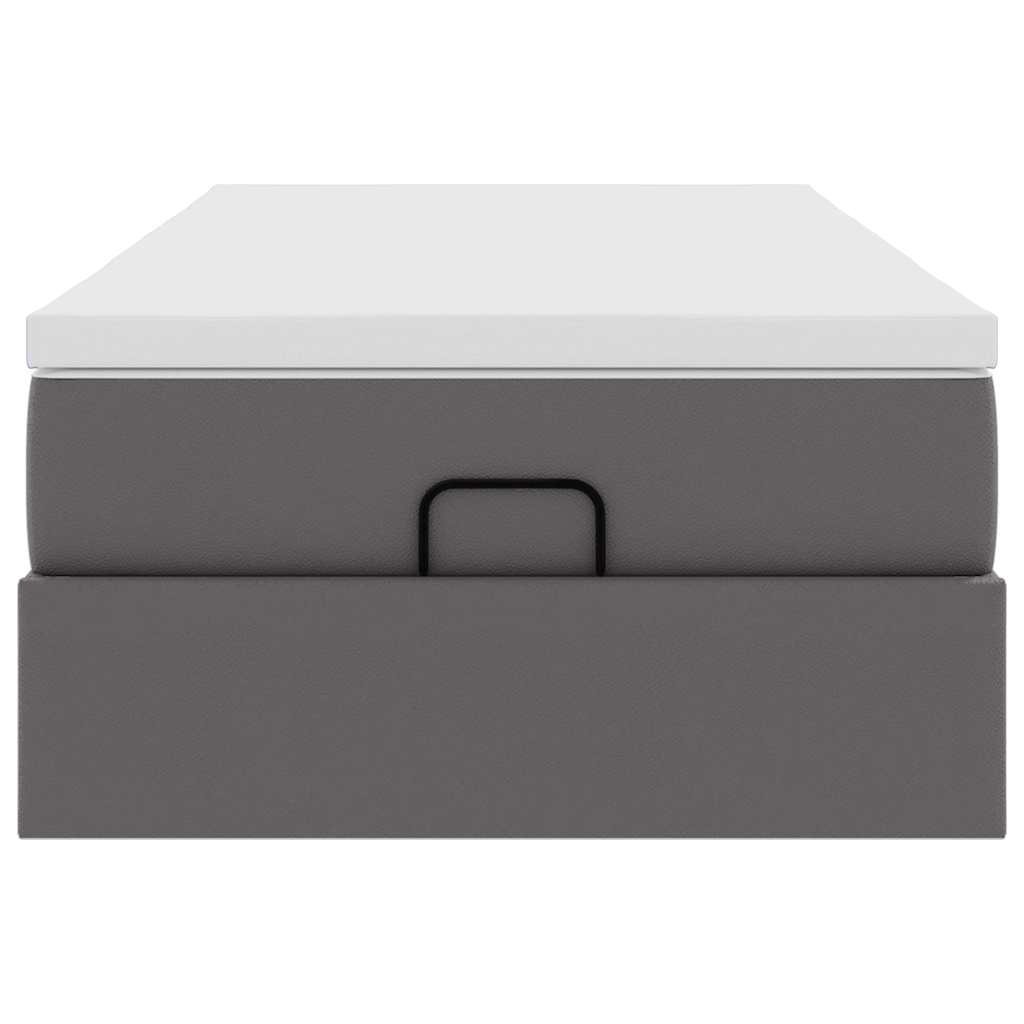 Estrutura de cama otomana com colchão cinza couro falso