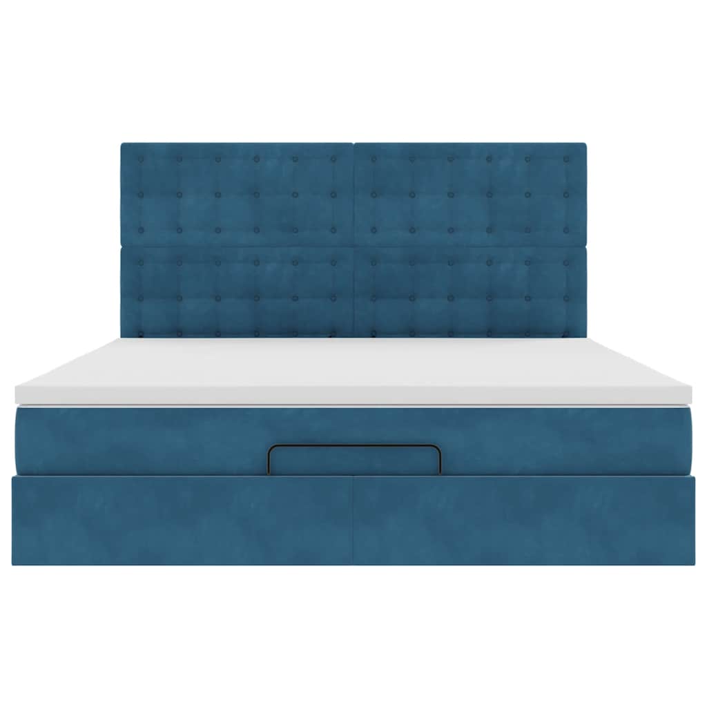 Estrutura cama otomana colchões 180x200 cm veludo azul escuro