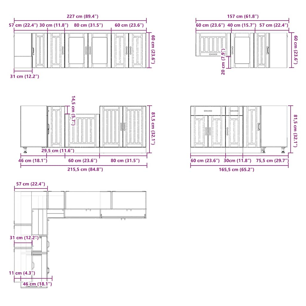 11 peças armário de cozinha conjunto Lucca cinza sonoma