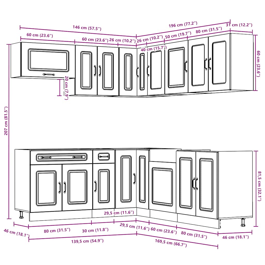 Este conjunto de armários de cozinha composto por 11 peças, com um design elegante, otimiza o espaço da sua cozinha e oferece um amplo espaço de arrumação para os seus pertences!