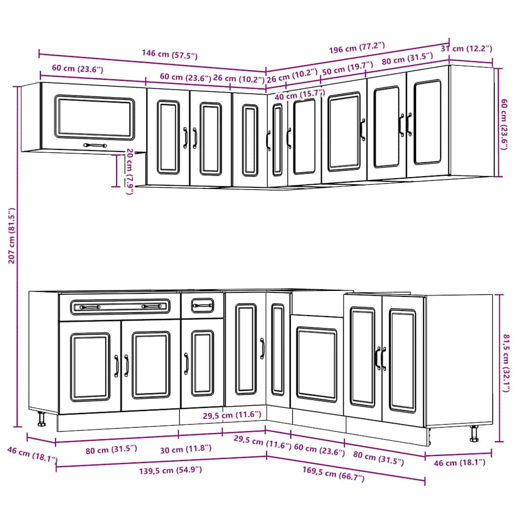 11 peças armário de cozinha conjunto Kalmar carvalho artesanal