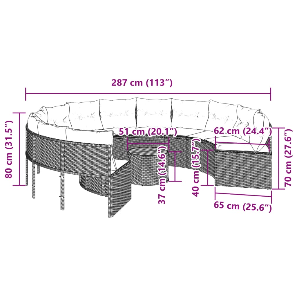 Sofá de jardim com mesa e almofadões redondo vime PE preto