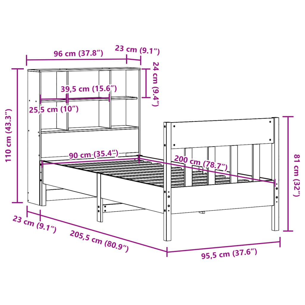 - Tamanho adequado do colchão: 90 x 200 cm (L x C) (colchão não incluído)