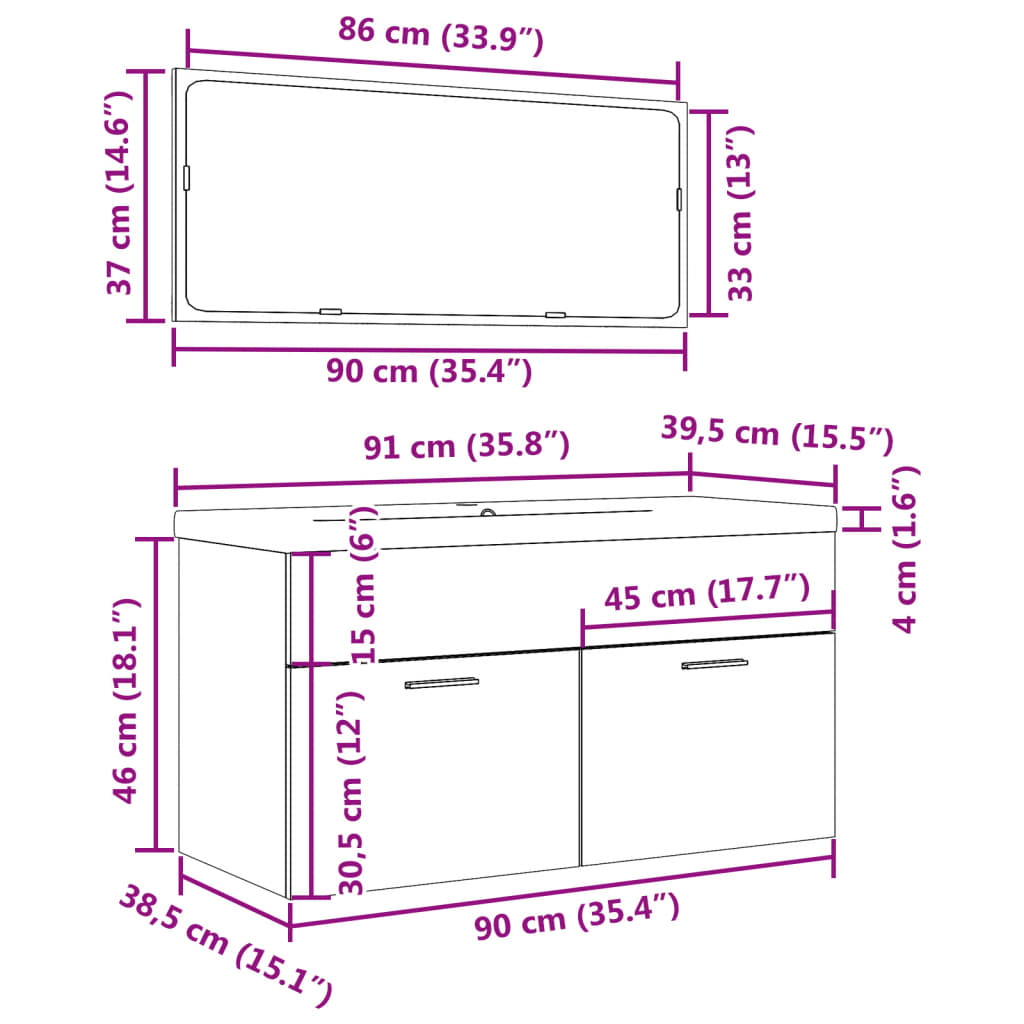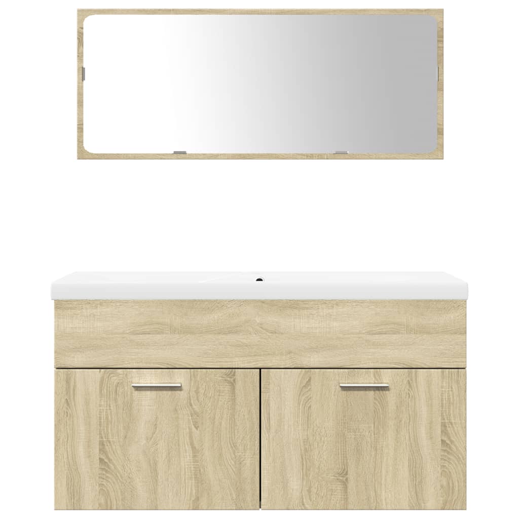 3 pcs conj. móveis casa banho derivados madeira carvalho sonoma