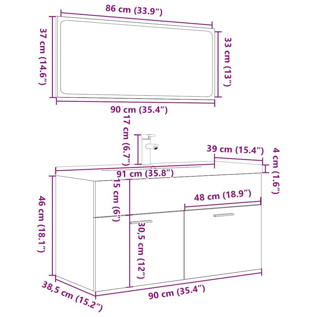 - Dimensões do armário para lavatório: 90 x 38,5 x 46 cm (L x P x A)