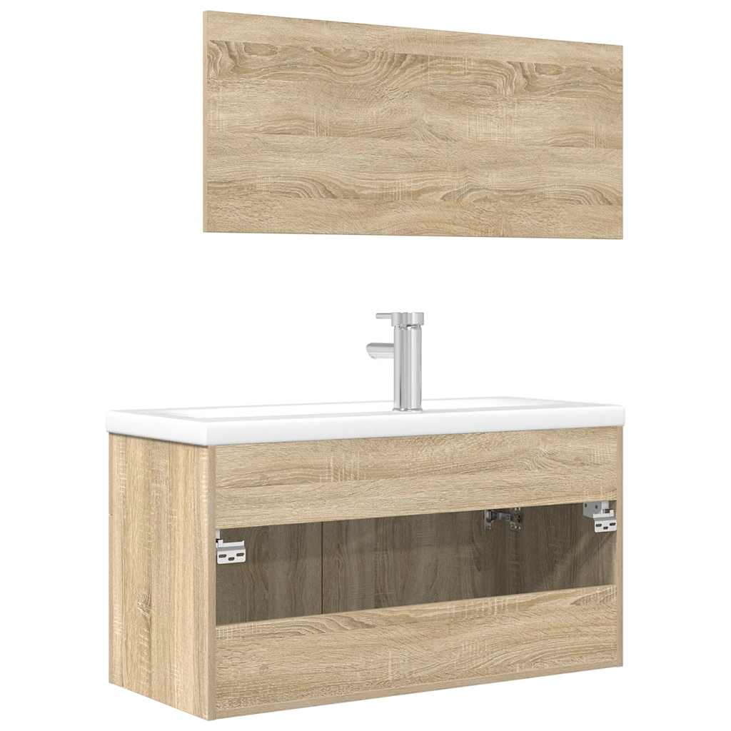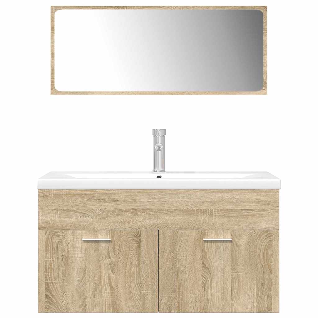3 pcs conj. móveis casa banho derivados madeira carvalho sonoma