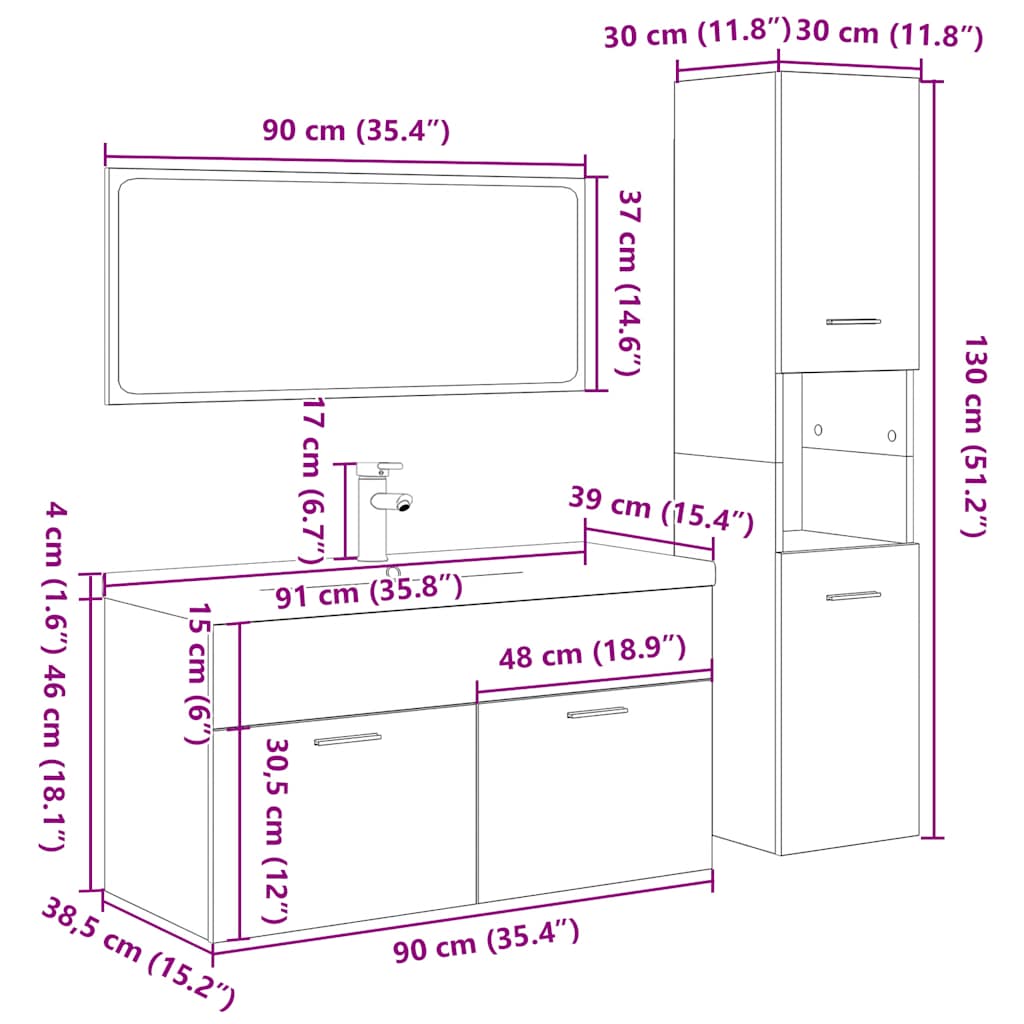 4 pcs conj. móveis casa banho derivados madeira carvalho sonoma