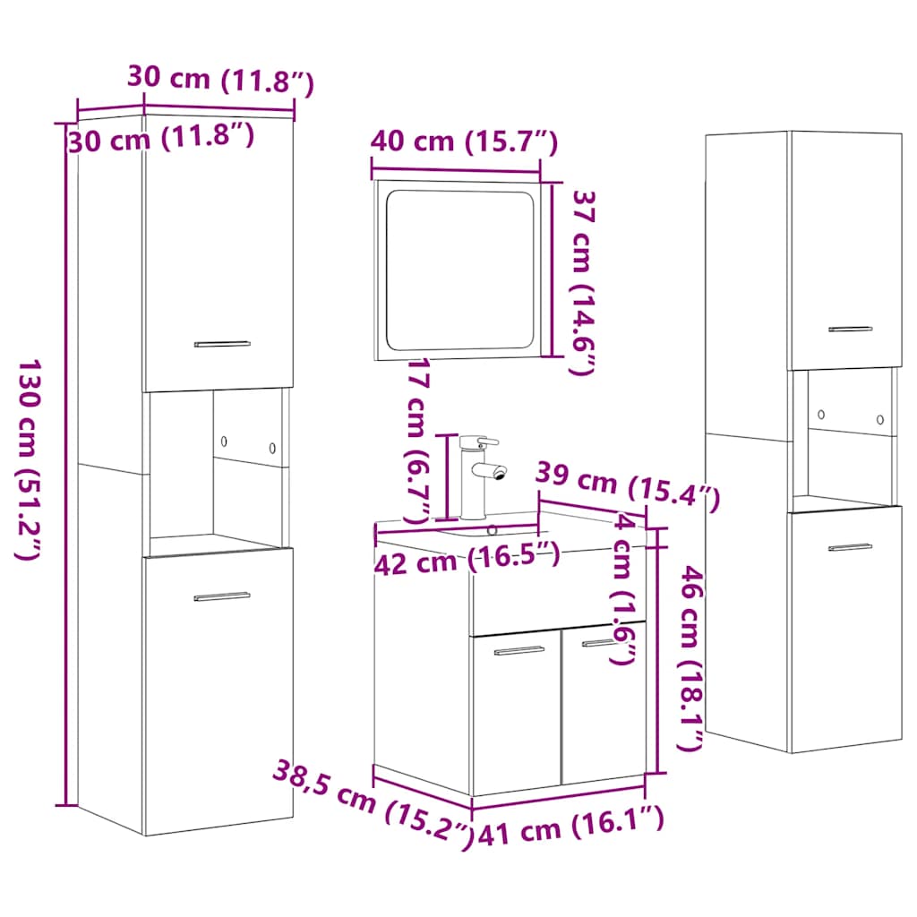 5 pcs conj. móveis casa banho derivados madeira carvalho sonoma