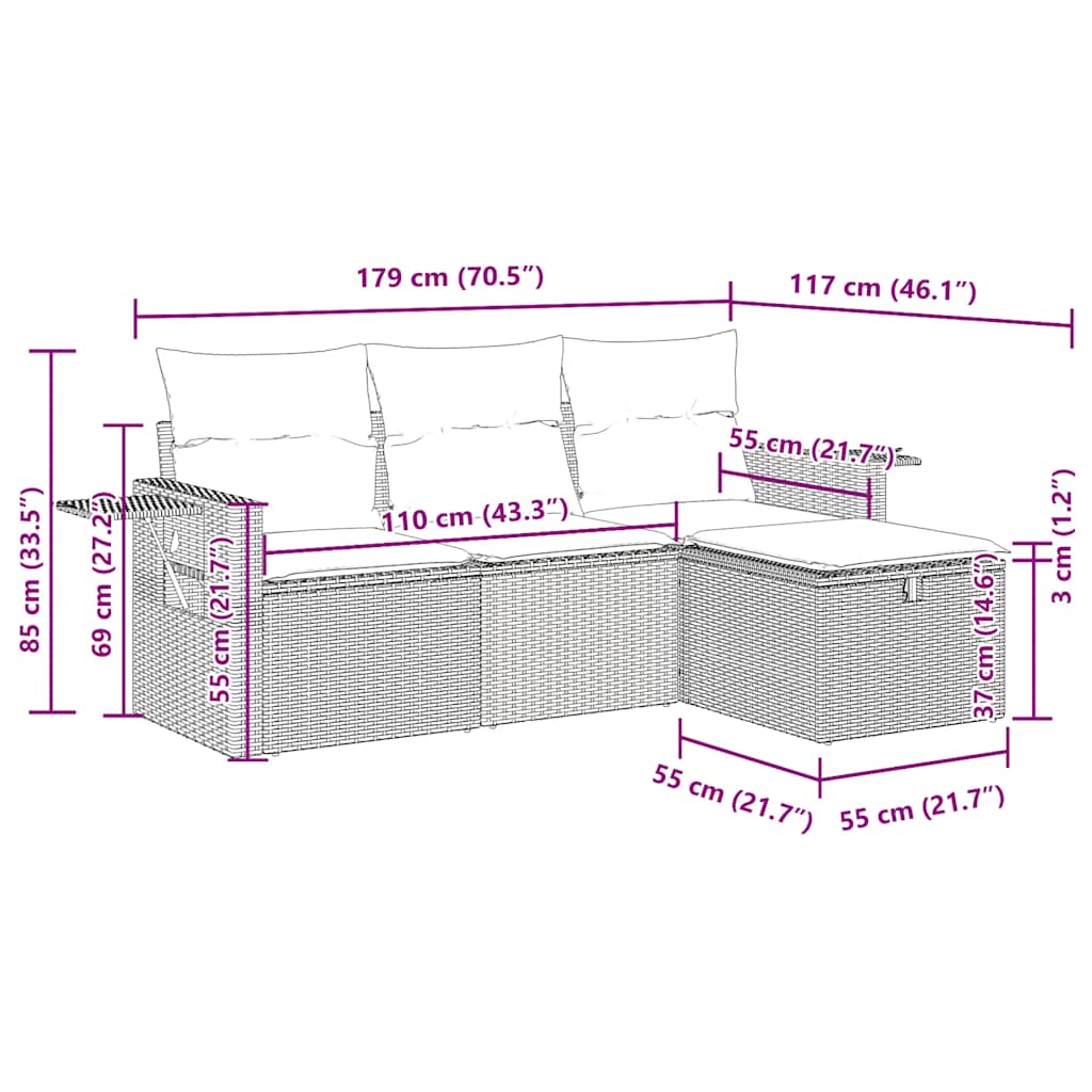 4 pcs conjunto de sofás para jardim c/ almofadões vime PE bege