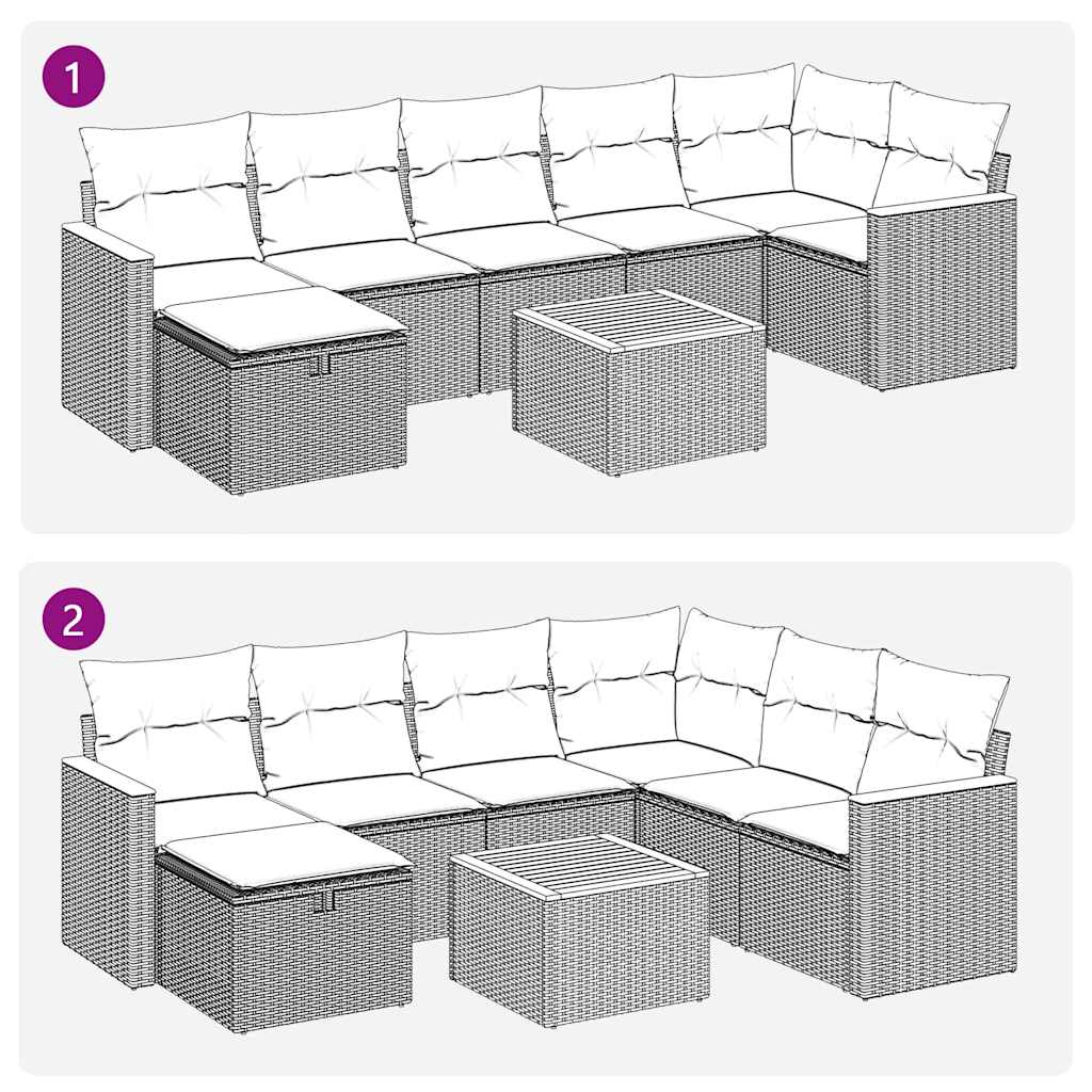 8 pcs conjunto sofás de jardim com almofadões vime PE preto