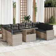 10 pcs conj. sofás jardim com almofadões vime PE cinzento-claro