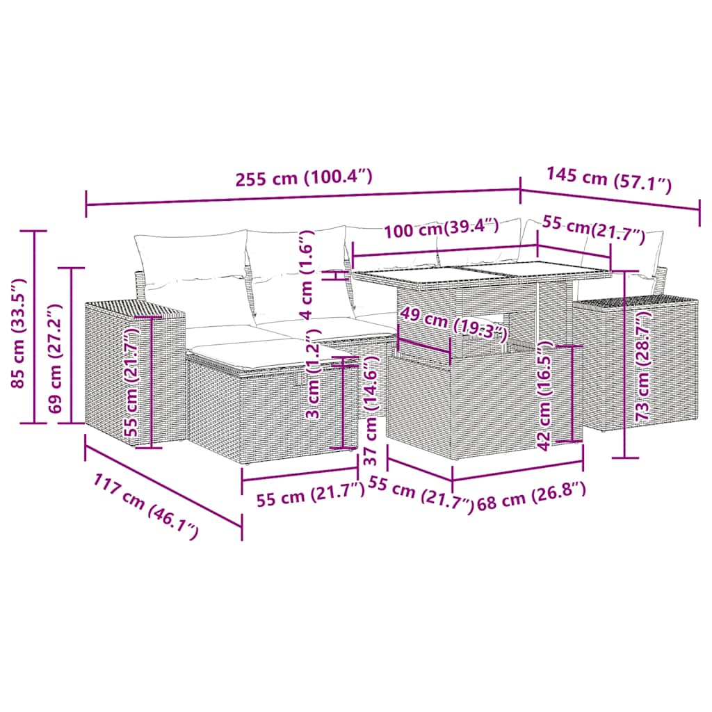 Este conjunto de sofás de jardim é o complemento perfeito para o seu quintal, terraço ou pátio, proporcionando um espaço confortável e convidativo para conversar com a família e amigos ou simplesmente relaxar e desfrutar do ar livre.