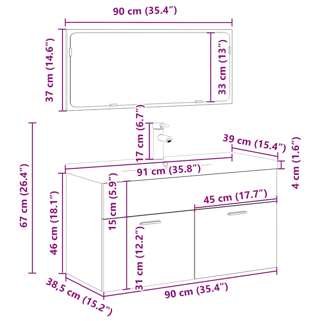 3 pcs conj. móveis casa banho derivados madeira madeira velha
