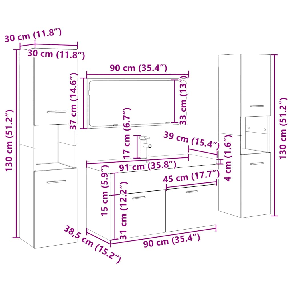 5 pcs conj. móveis casa banho derivados madeira madeira velha