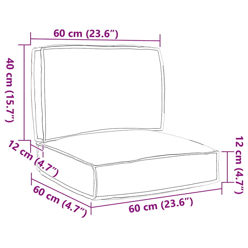 Conjunto de Almofadas para Palete 2 pcs Cinzeto 60 x 60 x 12 cm