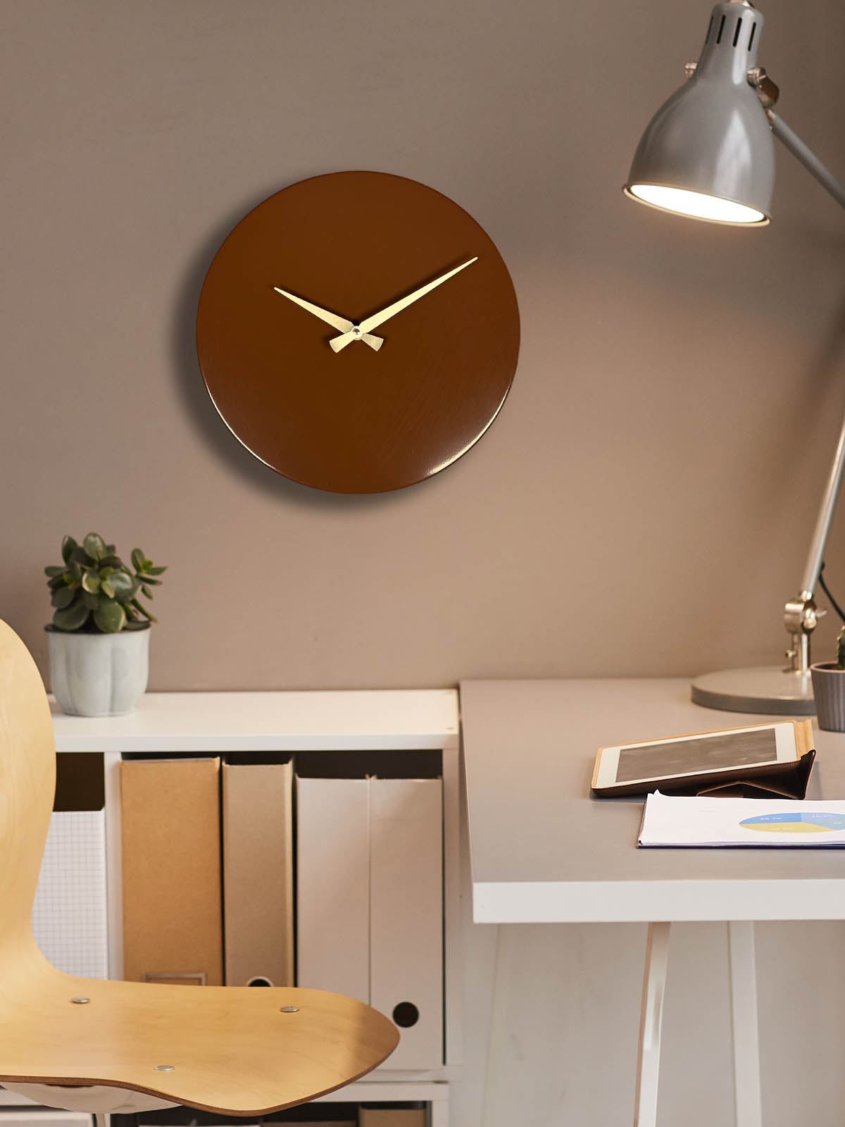 Relógio de Parede Decorativo 35Sivmet – Alumínio 100% – 35x35 cm – Mecanismo Silencioso – Castanho