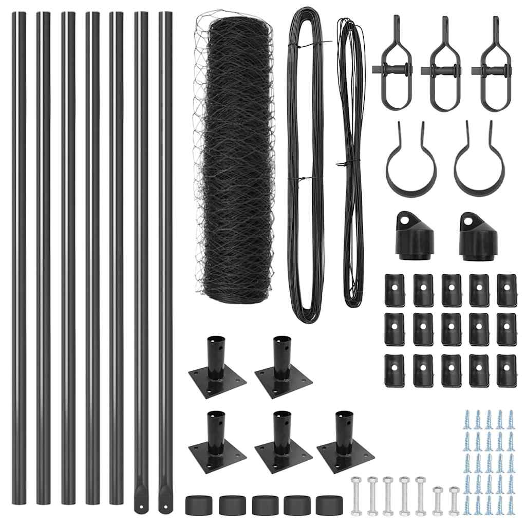 Cerca com Postes Cinzeto 0.4 x 10 m Aço revestido de PVC
