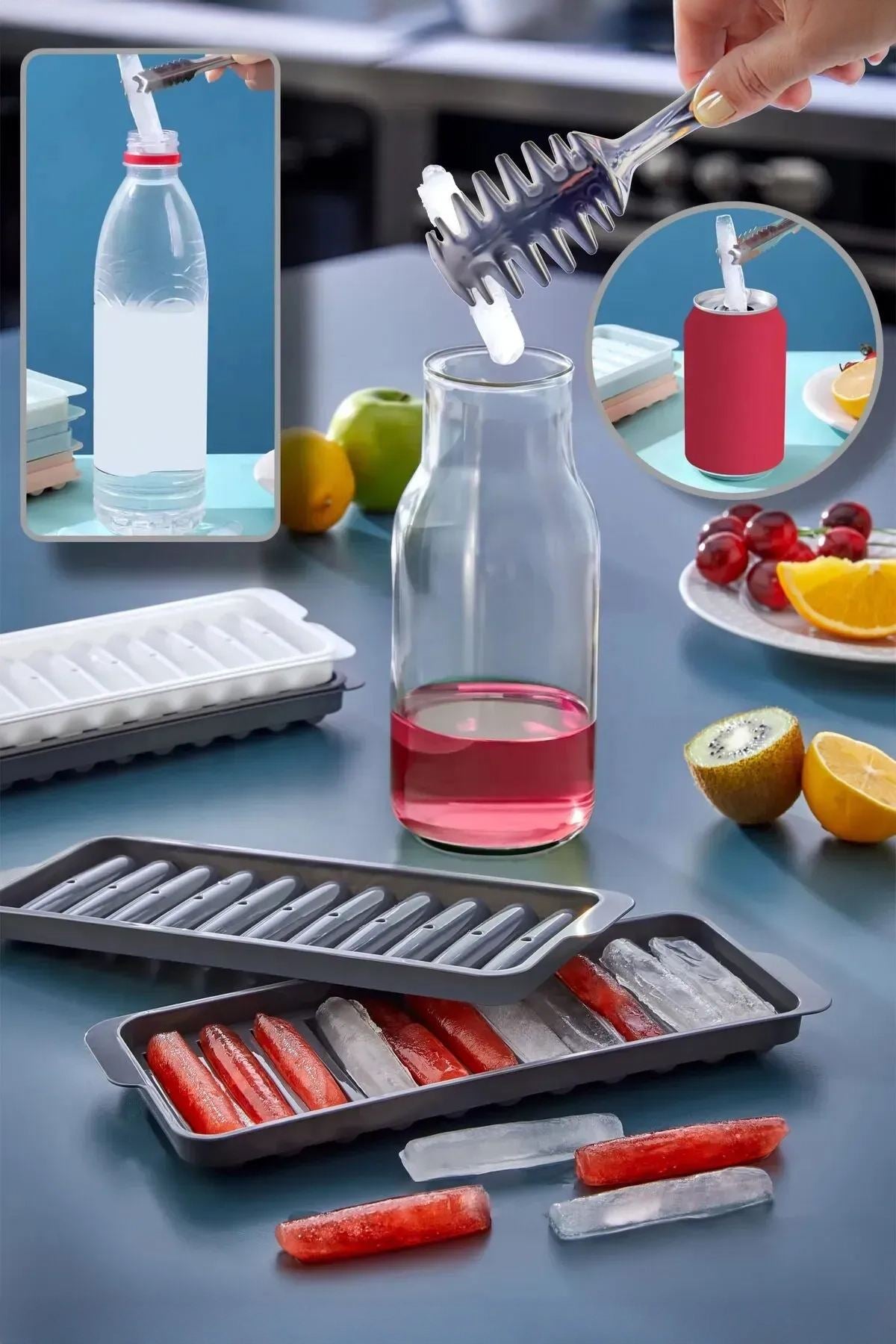 As garrafas de vidro transparentes exalam sofisticação, enquanto os detalhes em dourado adicionam um toque de luxo à sua experiência de jantar. Seja servindo água, suco ou coquetéis, essas garrafas elevarão qualquer arranjo de mesa. A moldura de gelo é perfeita para criar cubos de gelo com formas bonitas para manter suas bebidas frescas com estilo.