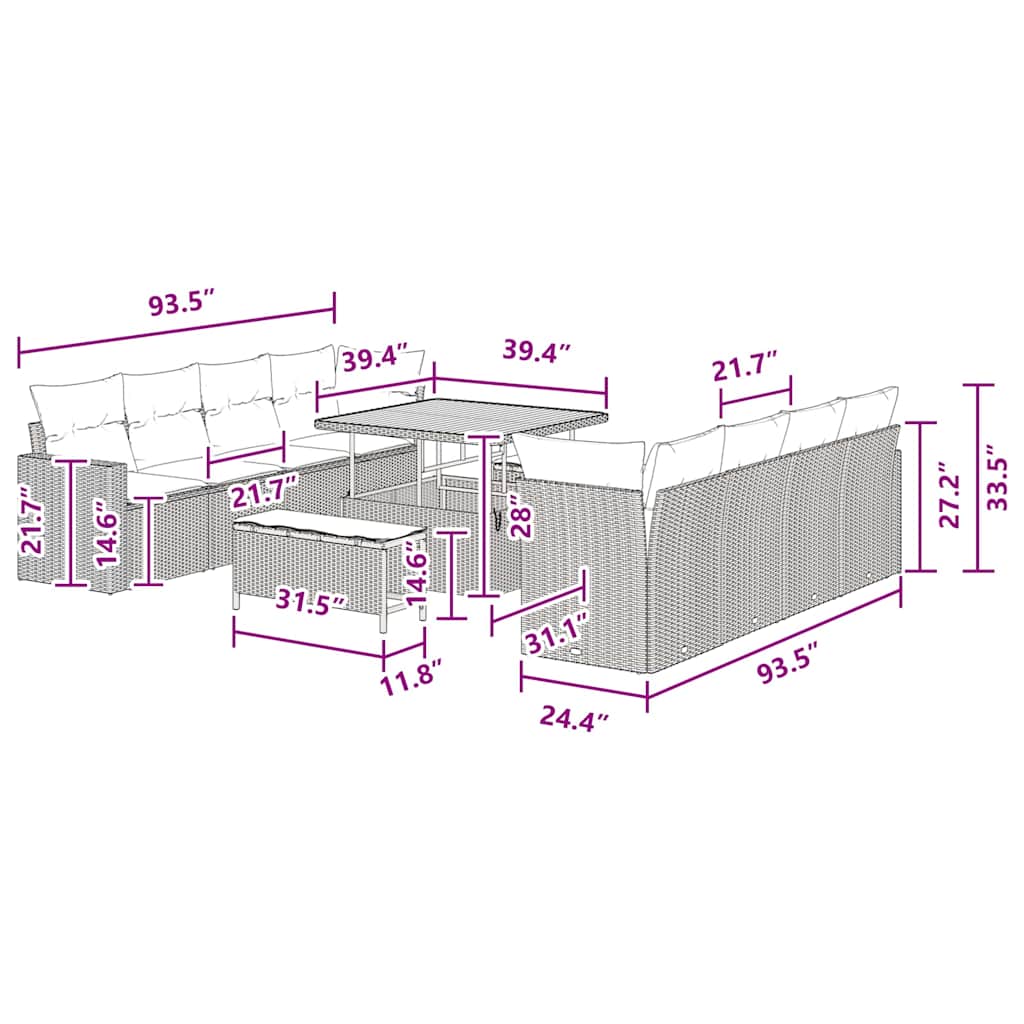 Conjunto de Sofá de Jardim 11 pcs Preto vime PE
