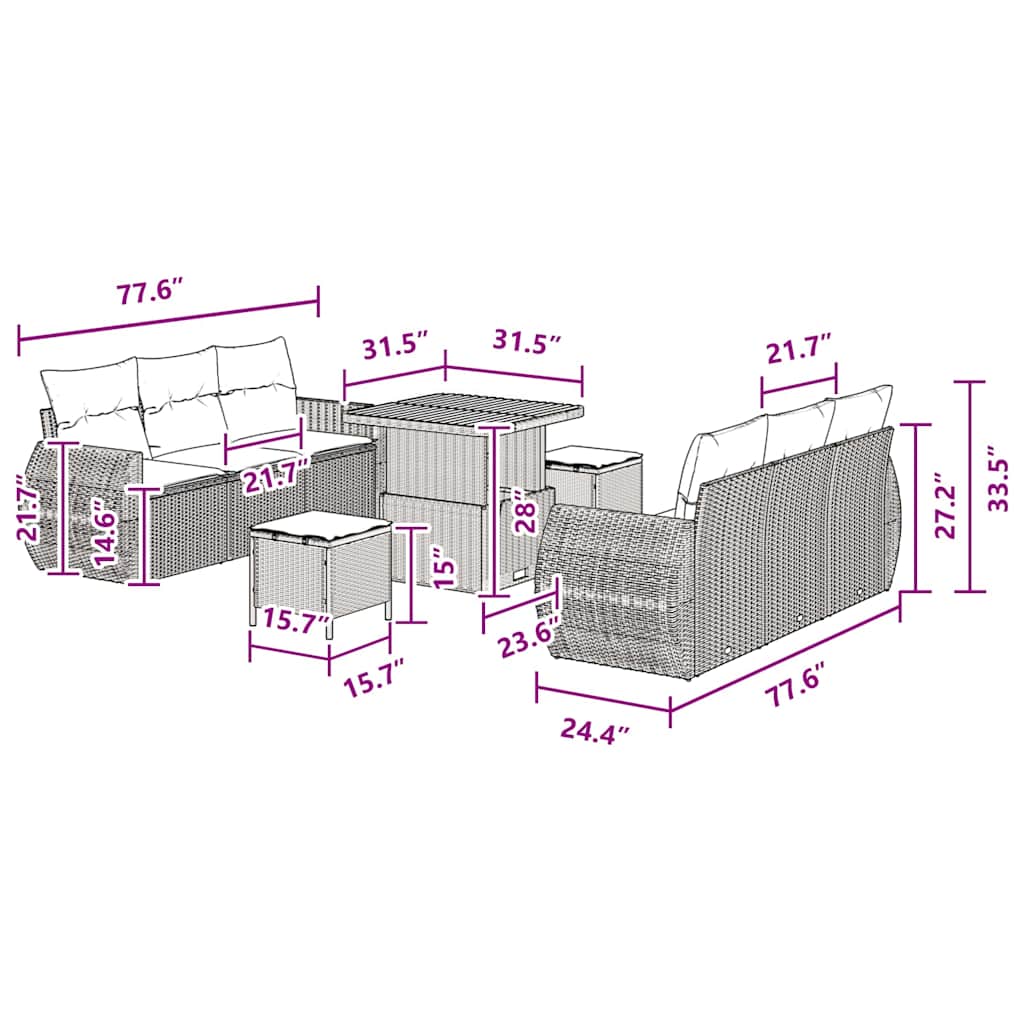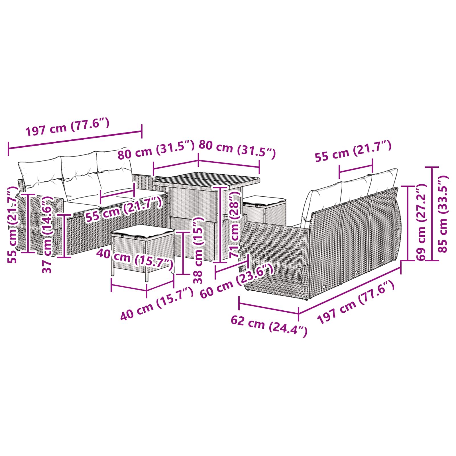 Conjunto de Sofá de Jardim com almofada 9 pcs Preto vime PE