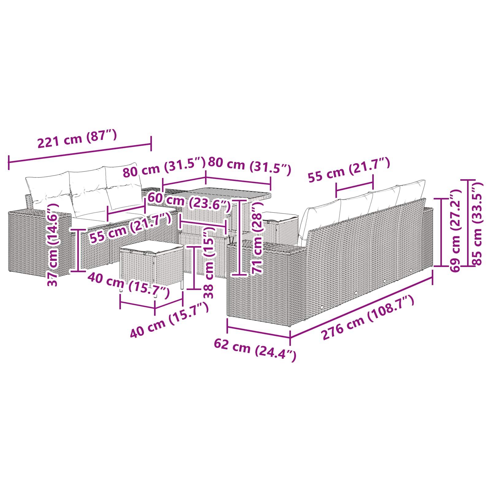 Conjunto de Sofá de Jardim 10 pcs Preto vime PE
