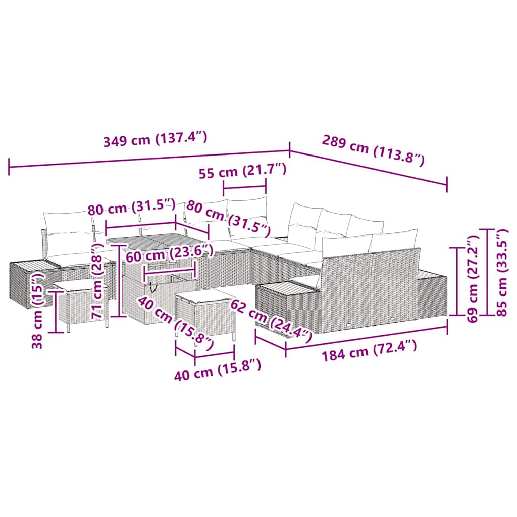 Conjunto de Sofá de Jardim 13 pcs Cinzeto Rattan Sintético
