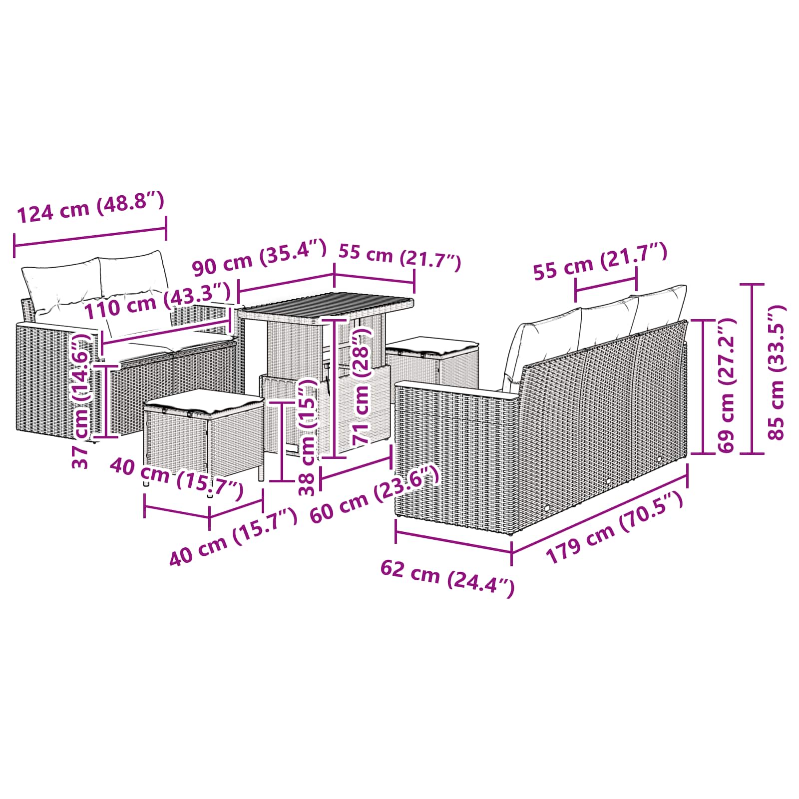 Conjunto de Sofá de Jardim 8 pcs Preto Rattan Sintético