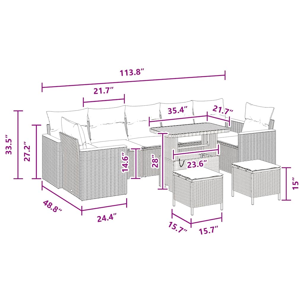 Conjunto de Sofá de Jardim 10 pcs Preto Rattan Sintético