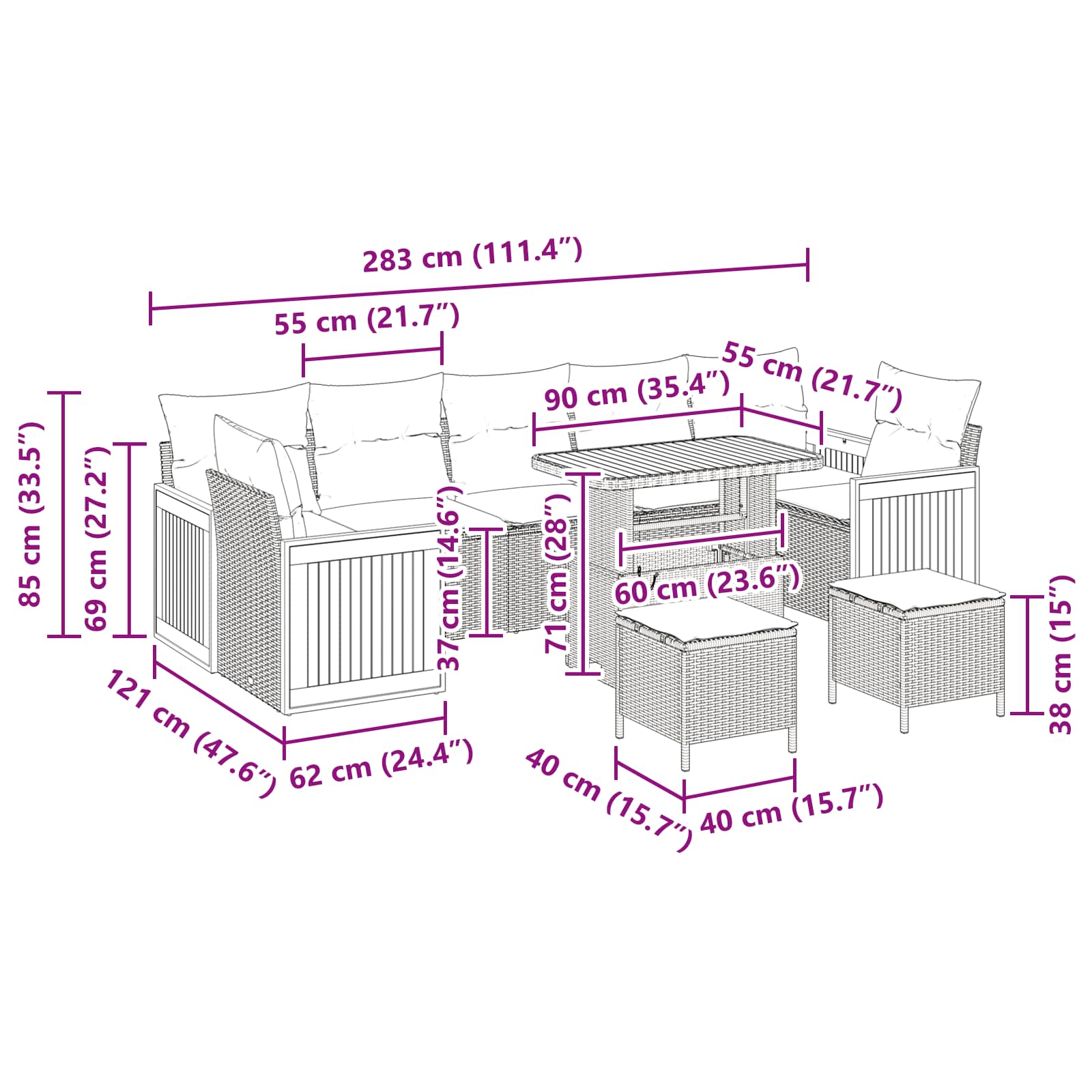Conjunto de Sofá de Jardim com almofada 10 pcs Preto