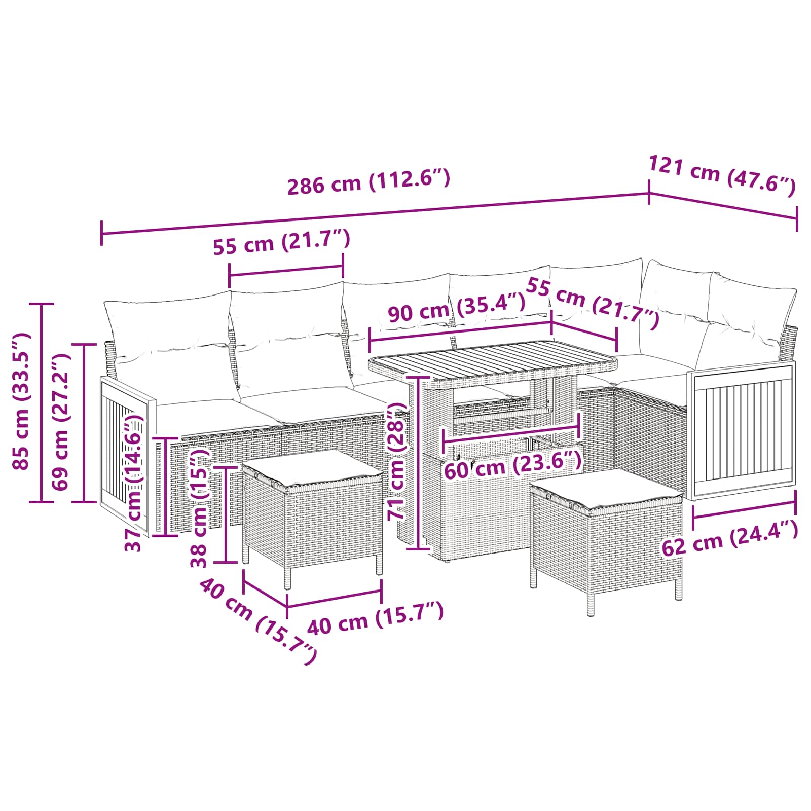 Conjunto de Sofá de Jardim com almofada 9 pcs Preto