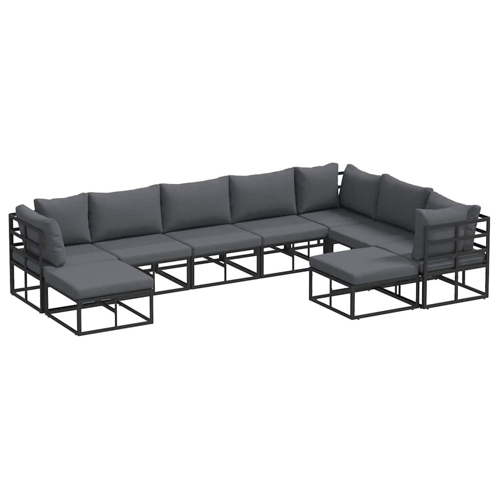 Conjunto de Sofá de Jardim 9 pcs Preto Alumínio