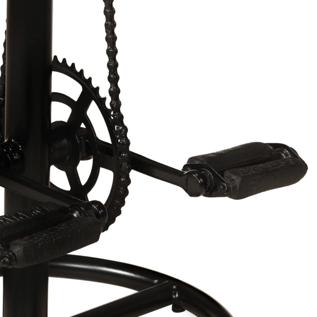 Estes bancos de bar são feitos em madeira de mangueira maciça e ferro, sendo altamente estáveis e duráveis. As cadeiras bar possuem apoios de pés que lembram os pedais de uma bicicleta e que contribuem para o conforto de assento do conjunto, para além do seu estilo industrial. Cada etapa do processo de construção é realizada com um cuidado excecional, seja a recombinação, o polimento, a pintura e o envernizamento. Os encostos também atribuem um conforto adicional aos bancos.