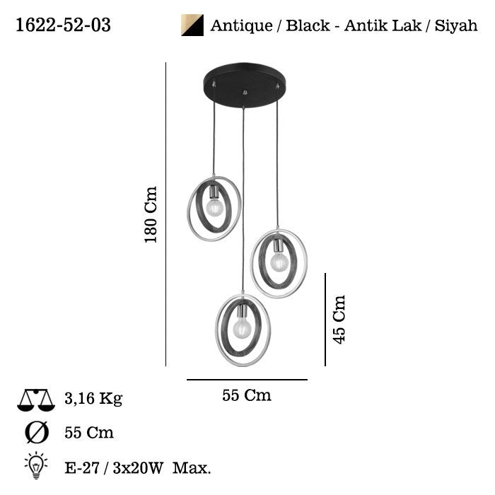 O brilho suave dos três soquetes E27 (lâmpadas não incluídas) criará uma atmosfera aconchegante e acolhedora, perfeita para entreter os hóspedes ou relaxar após um longo dia. A altura ajustável permite que você personalize a iluminação para se adequar ao seu espaço e preferências.