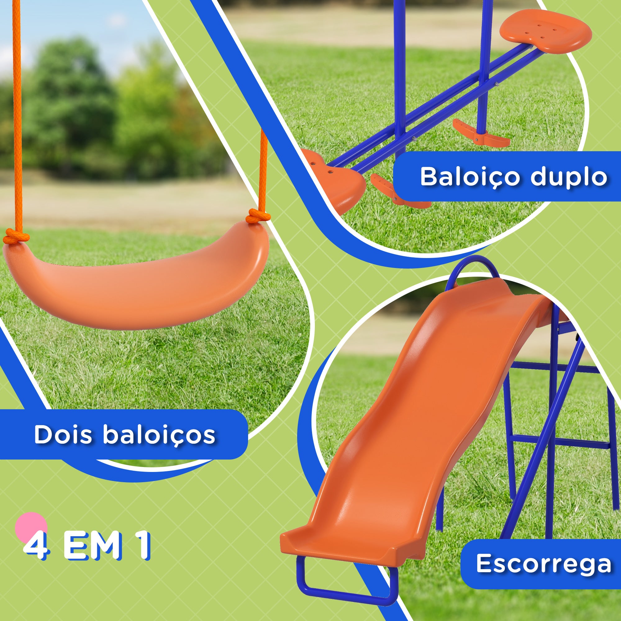 Baloiço Infantil 4 em 1 – 367x192x180 cm – Multicor – Metal e Polietileno