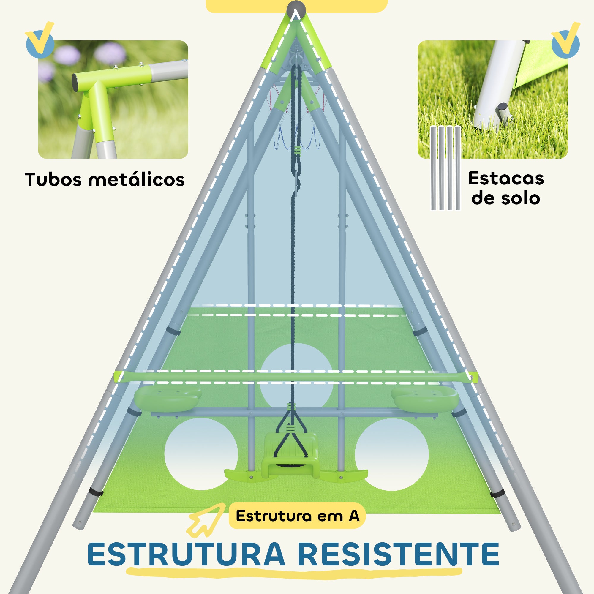 Baloiço para Crianças 4 em 1 Verde 215x180x182 cm