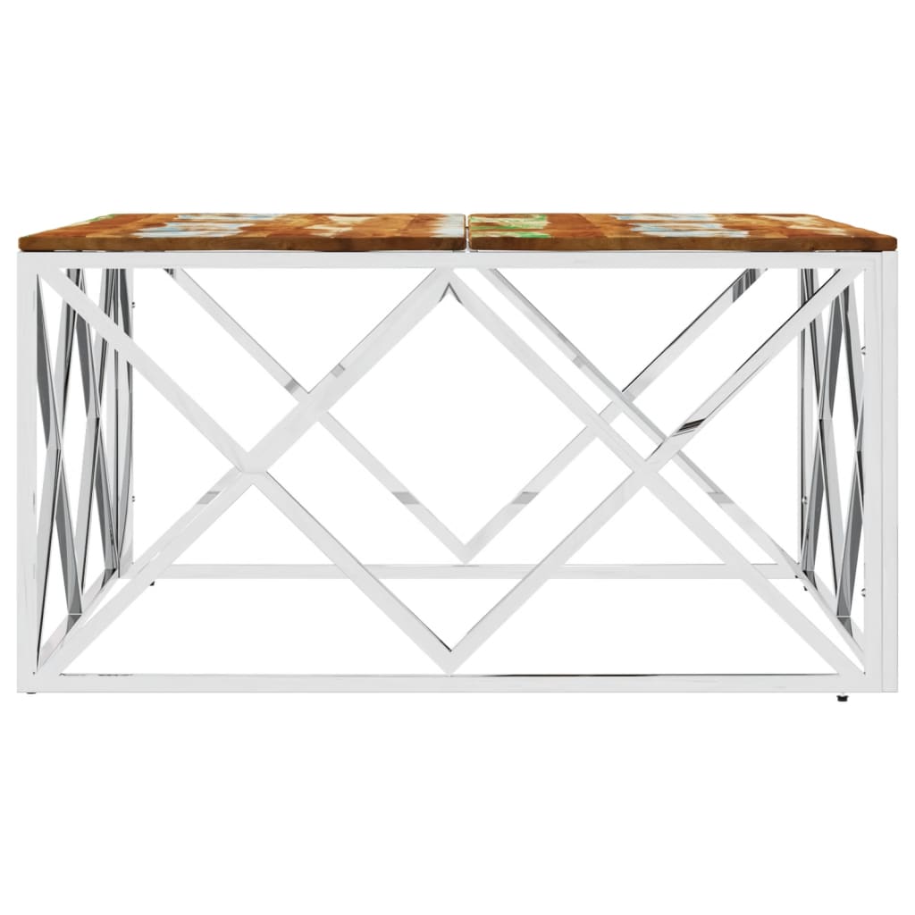 Mesa centro aço inoxidável/madeira recuperada maciça prateado