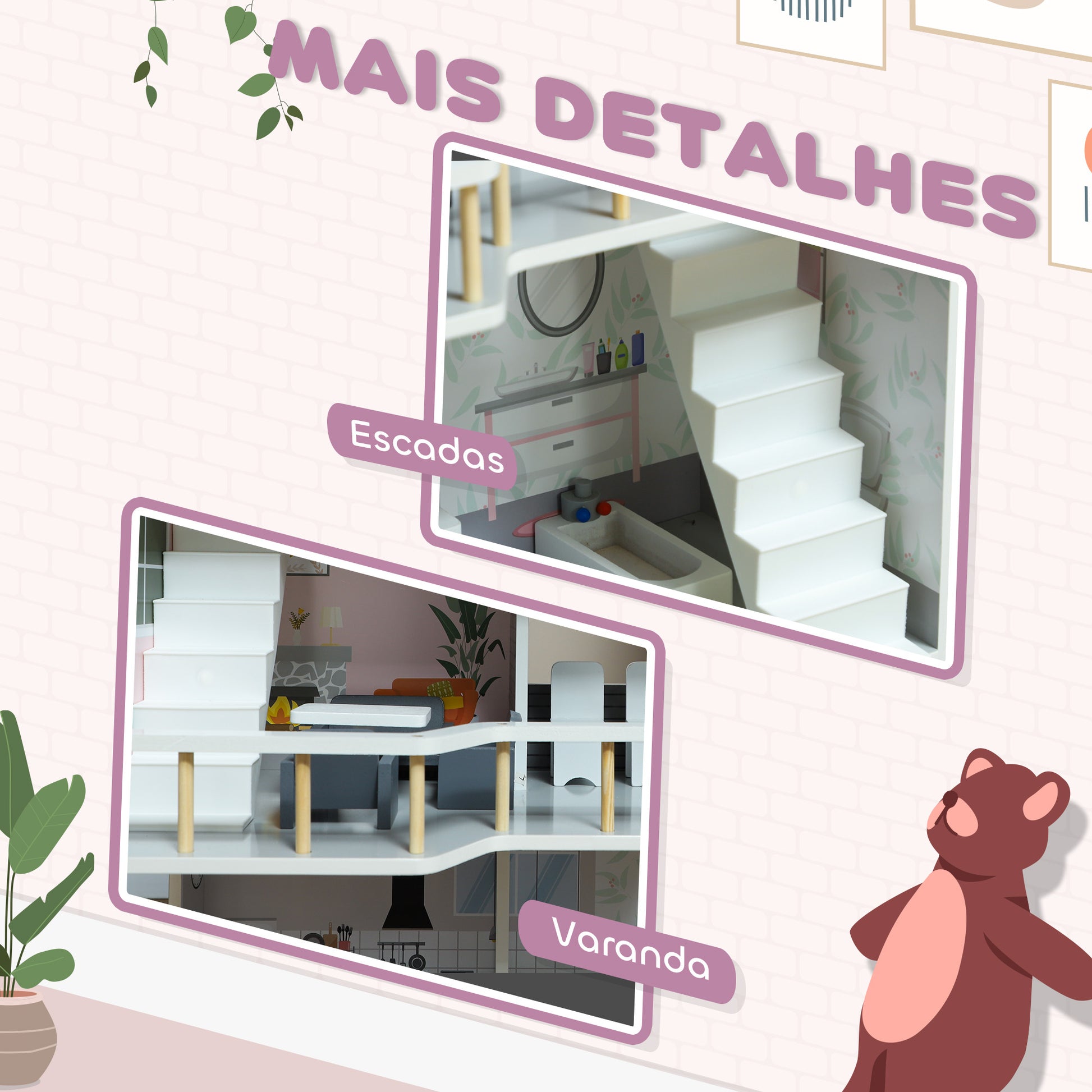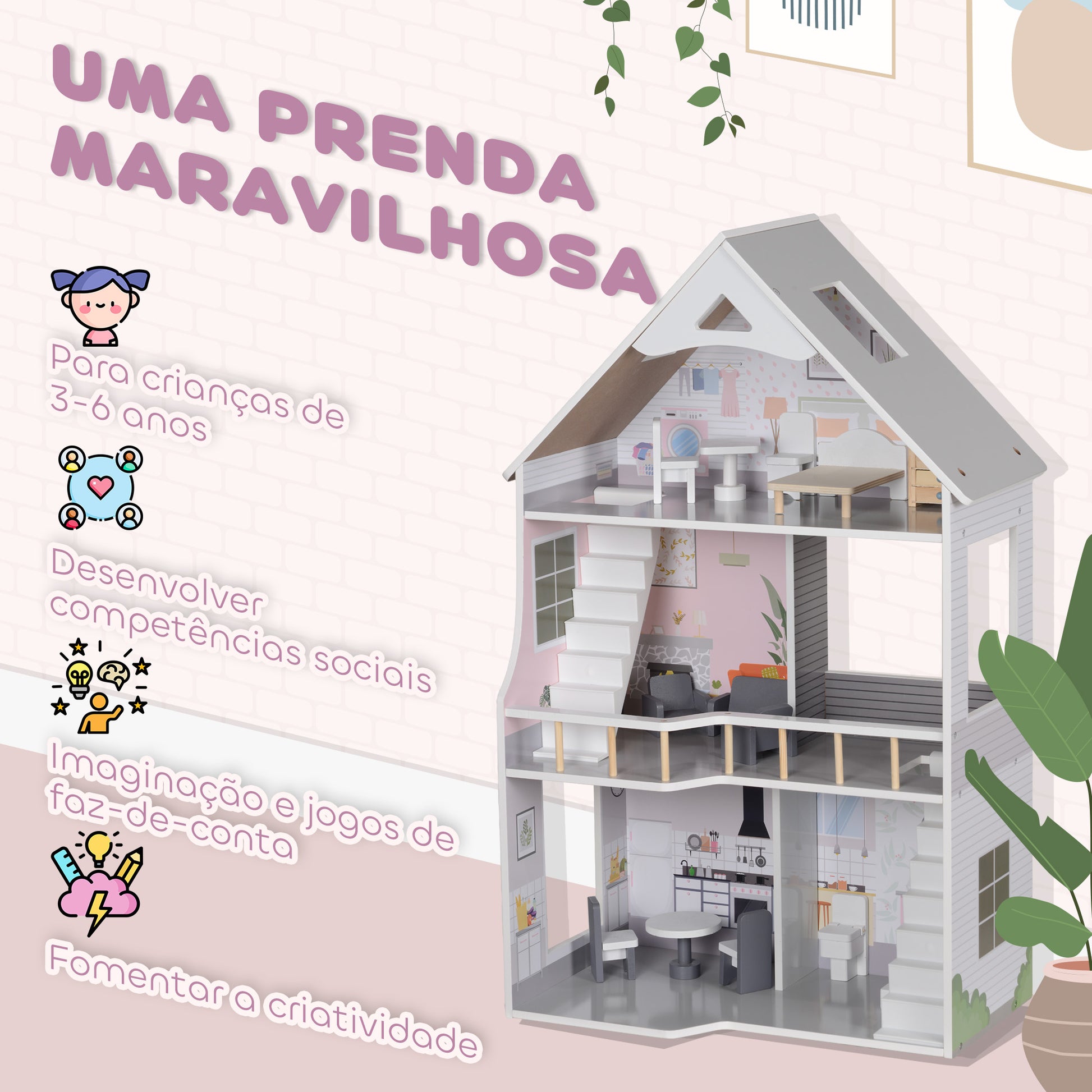 Encante as crianças com esta Casa de Bonecas de Madeira Multicor, com 3 andares e 80 cm de altura, totalmente mobiliada para proporcionar horas de diversão.