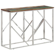 Mesa consola aço inoxidável/madeira recuperada maciça prateado
