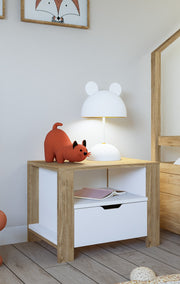 Mesa de cabeceira – 60 cm x 42 cm x 45 cm – Nogueira Clara e Branco – Painéis de Partículas com Revestimento de Melamina