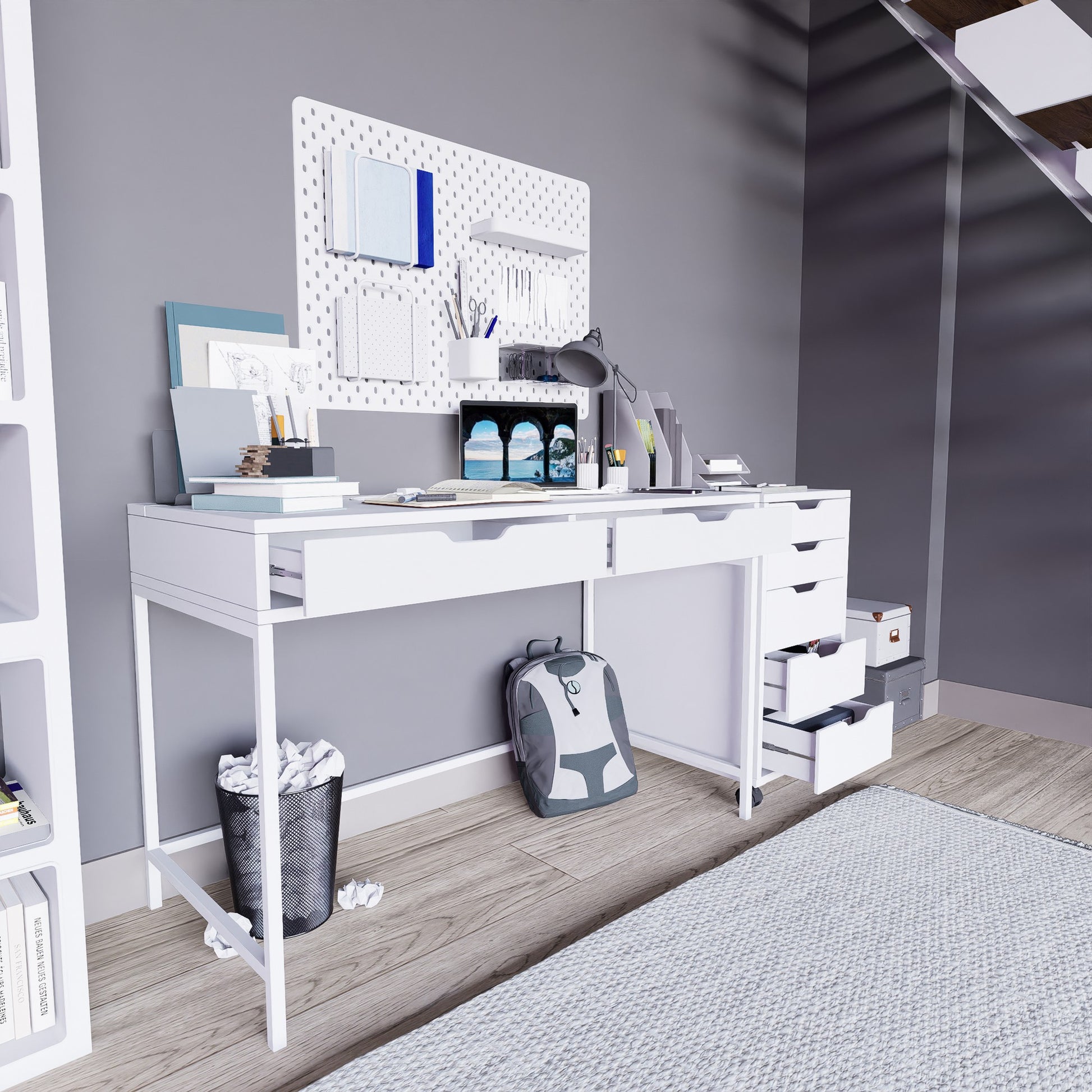 Fabricada a partir de painéis de partículas 100% revestidos a melamina, esta secretária de estudo foi concebida para durar. A espessura de 18 mm garante durabilidade e estabilidade, para que possa estudar com toda a tranquilidade. A cor branca dá um toque de elegância e sofisticação à sua sala de estudo.