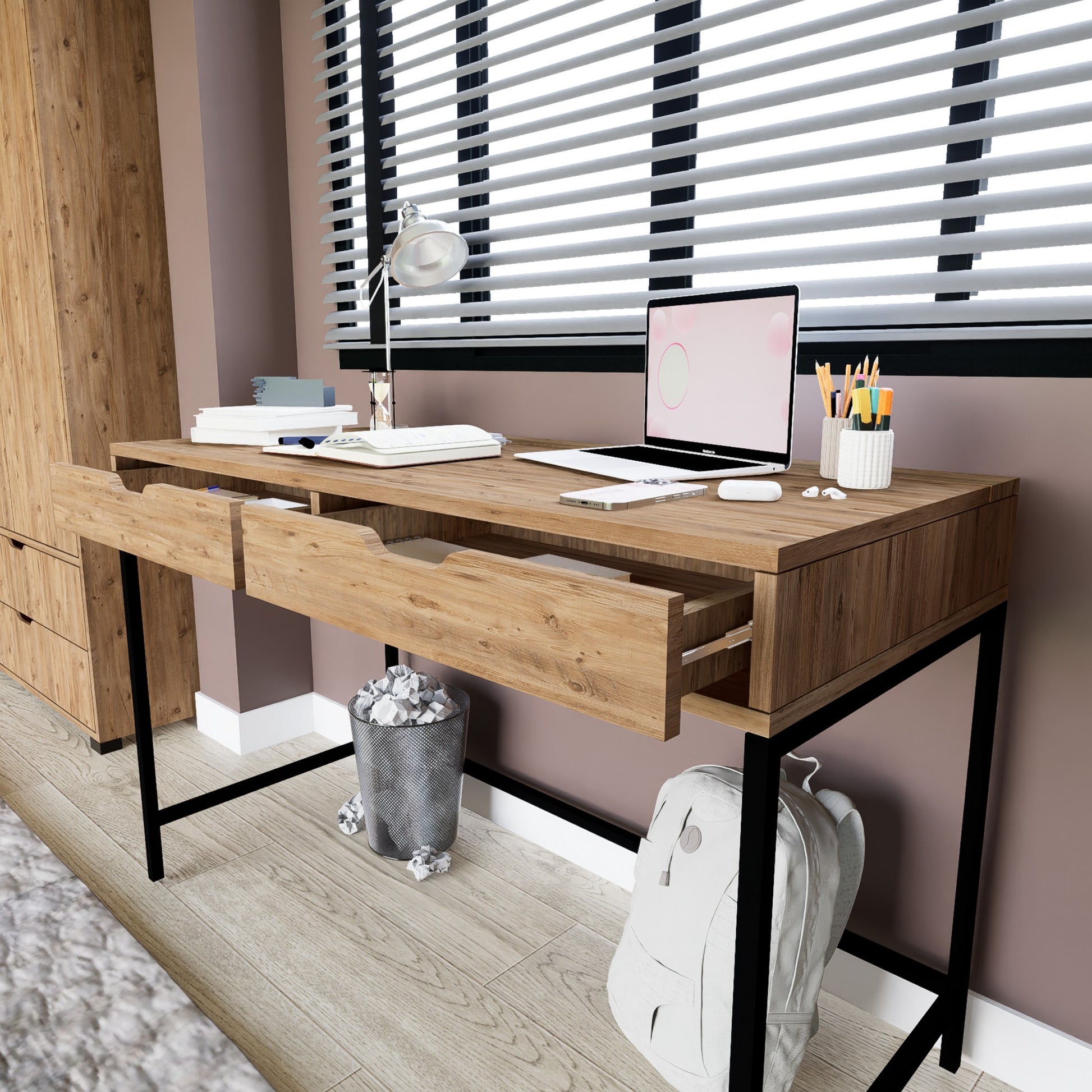 Transforme o seu espaço de estudo num santuário de produtividade com a nossa fantástica secretária de estudo em pinho atlântico. Fabricada a partir de painéis de partículas 100% revestidos a melamina, esta secretária não só é elegante como também durável, garantindo que será uma adição duradoura à sua casa.