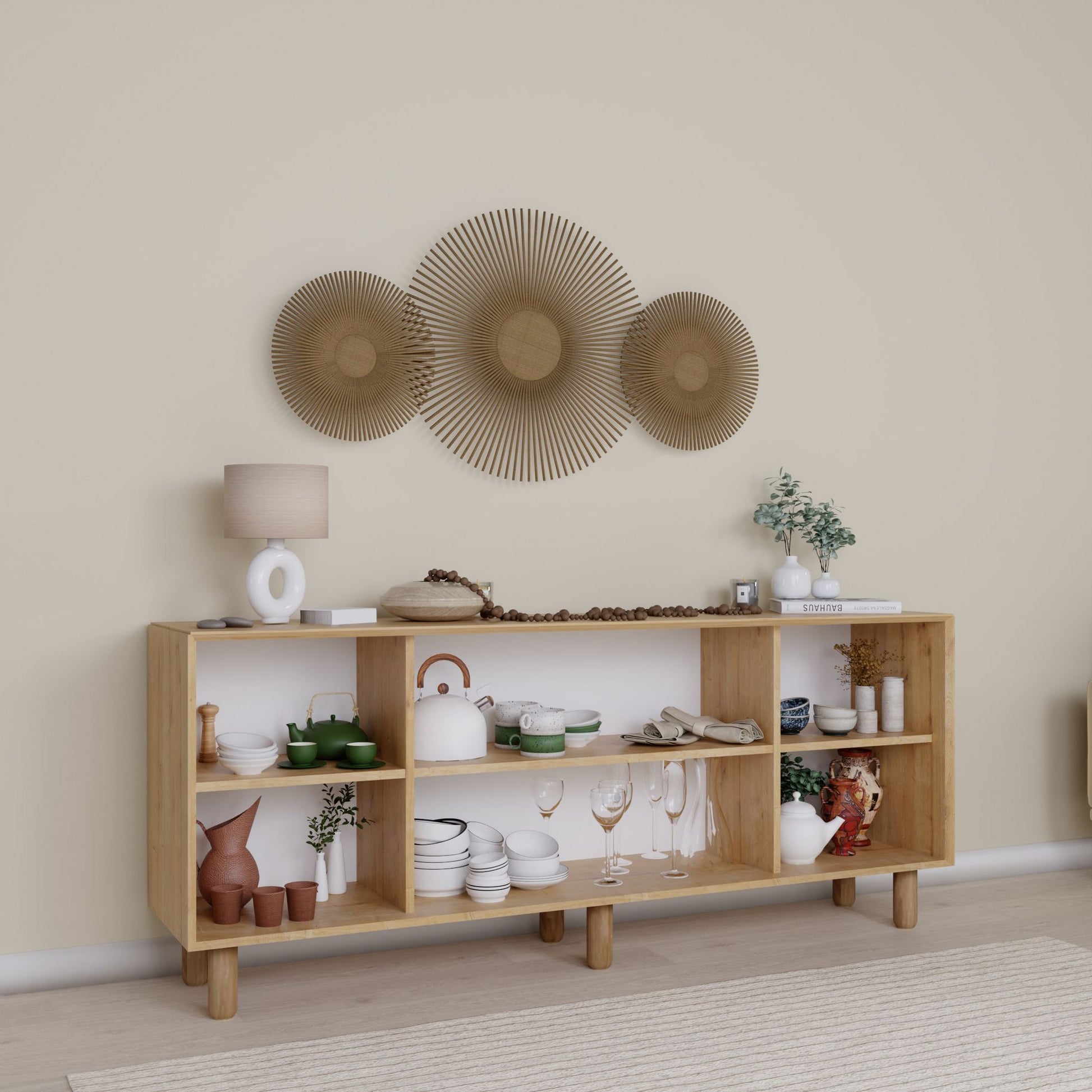 Com seu design elegante e cor nogueira, este console instantaneamente elevará o visual de qualquer ambiente. A espessura de 18 mm adiciona um toque de luxo, enquanto o amplo espaço de armazenamento proporcionado pelas numerosas prateleiras permite que você mantenha seus pertences organizados e livres de bagunça.
