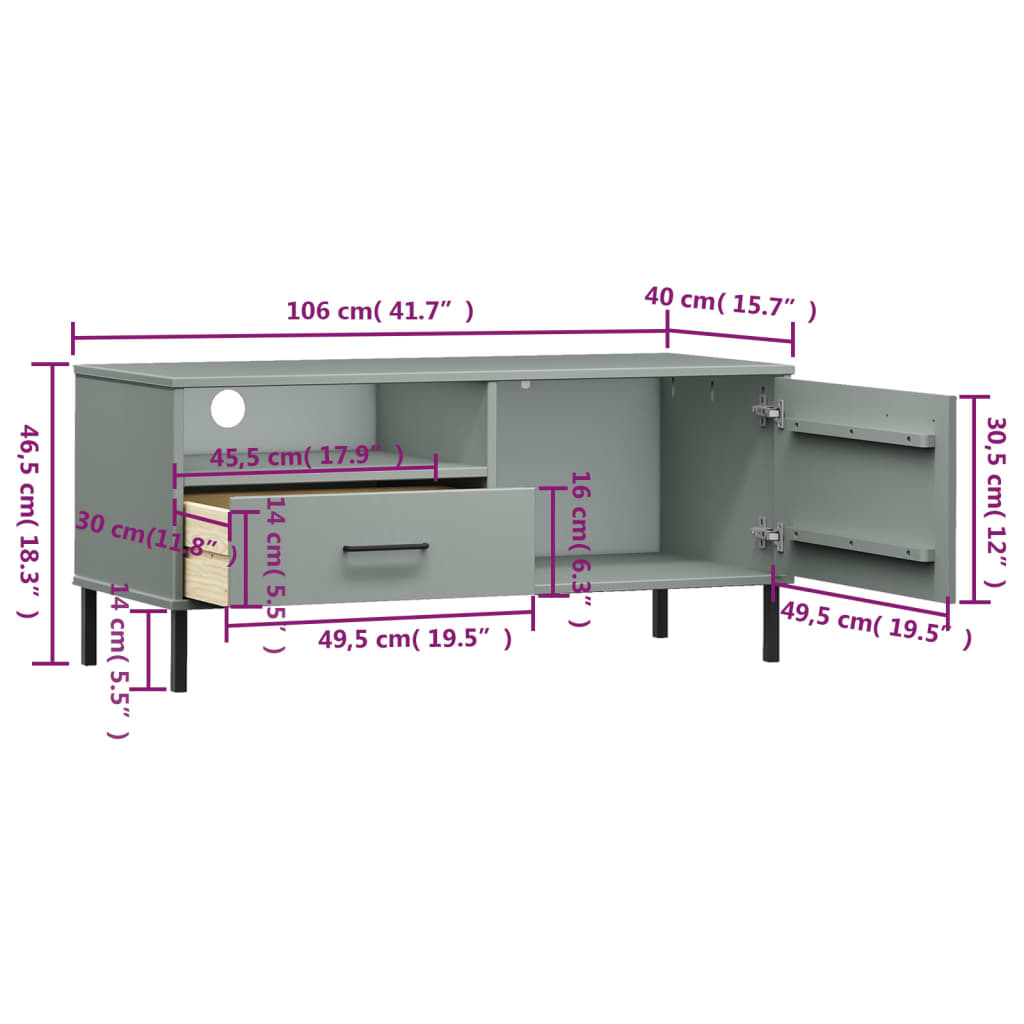 Móvel de TV c/ pernas de metal OSLO pinho maciço cinzento