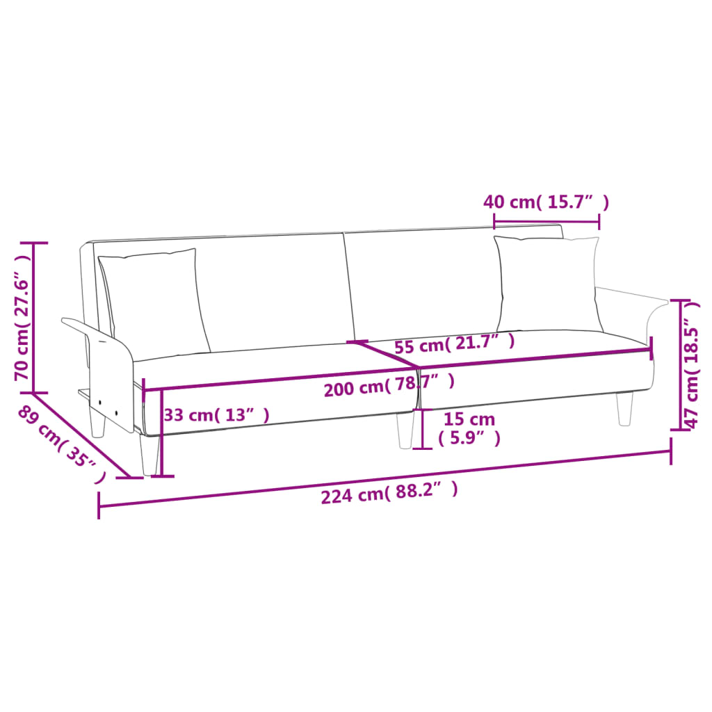 - Encosto ajustável: pode empurrar os dois almofadões separados do sofá-cama para trás, parcialmente, ou completamente para baixo para criar um local ideal para uma soneca ou uma cama de solteiro.