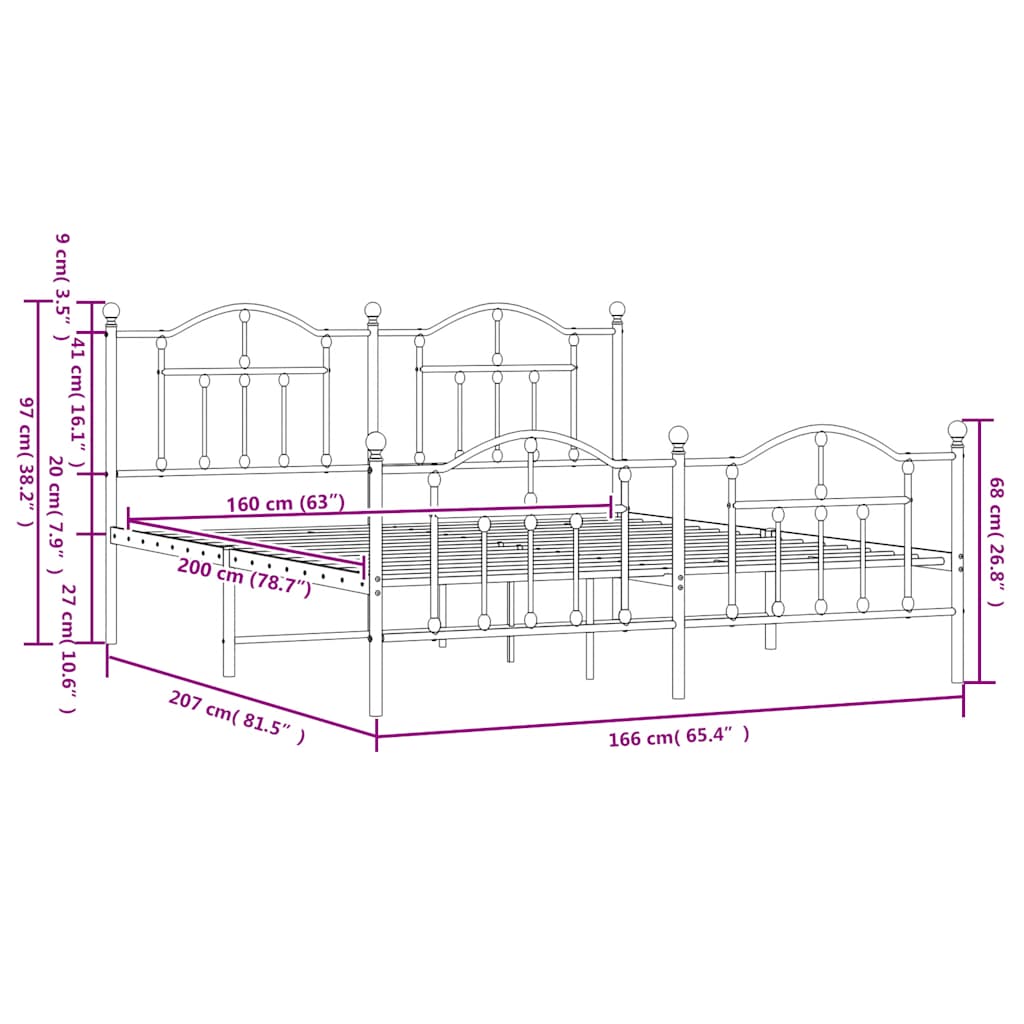 - Tamanho adequado do colchão: 160 x 200 cm (L x C) (colchão não incluído)