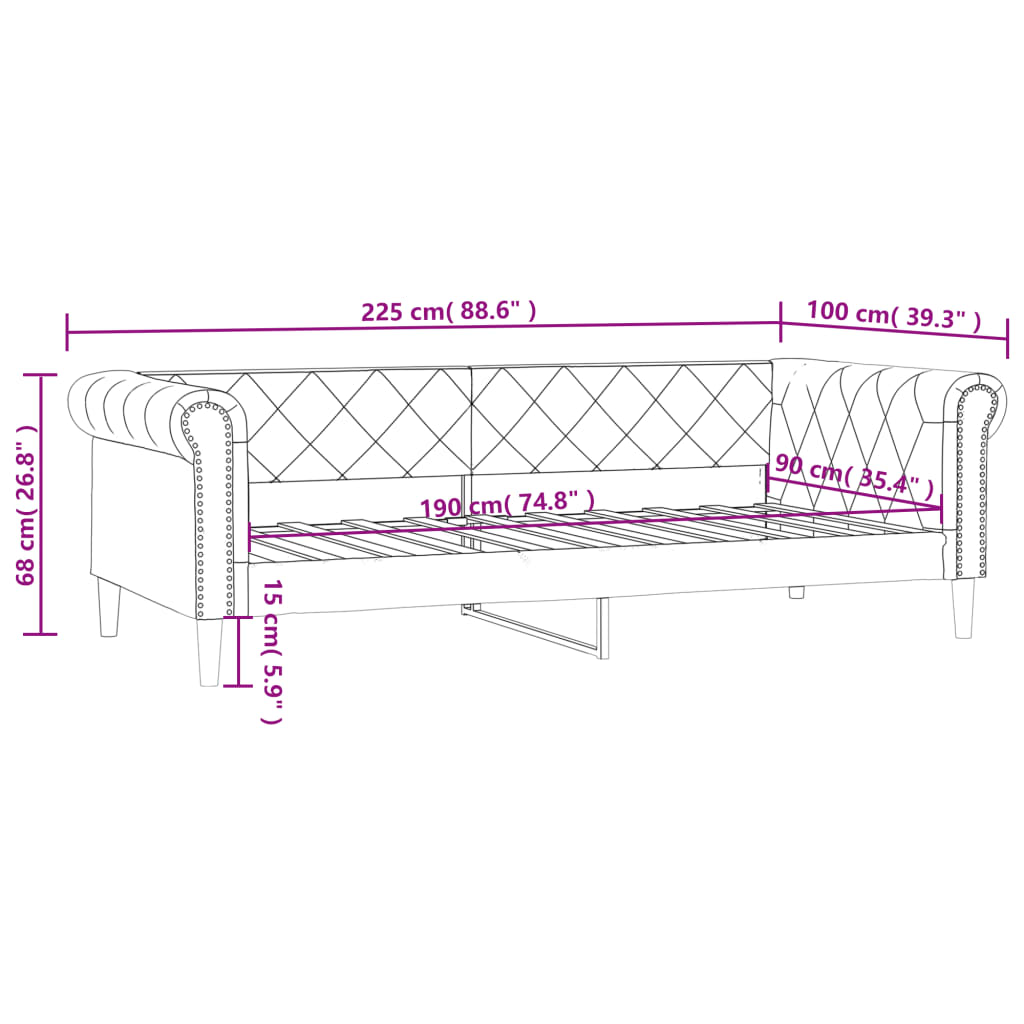 - Dimensões gerais: 225 x 100 x 68 cm (L x P x A)
