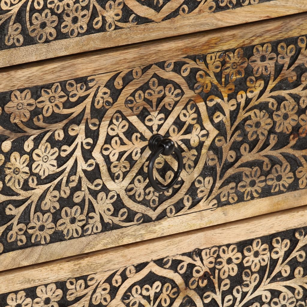 - Estilo retro: esta mesa de cabeceira com padrões florais esculpidos à mão traz o luxo do estilo retro para o seu interior, sendo o ponto focal da sua divisão.