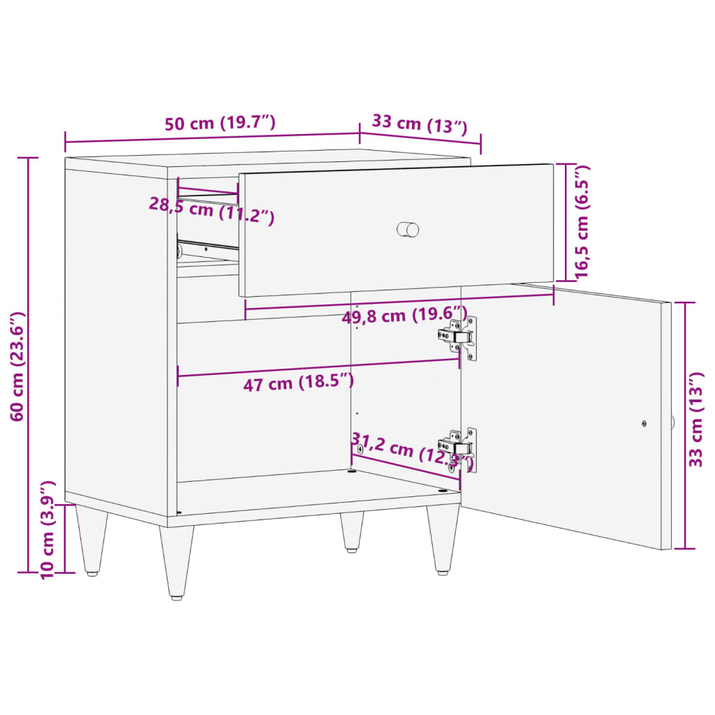 Mesa de cabeceira 50x33x60 cm madeira de mangueira maciça