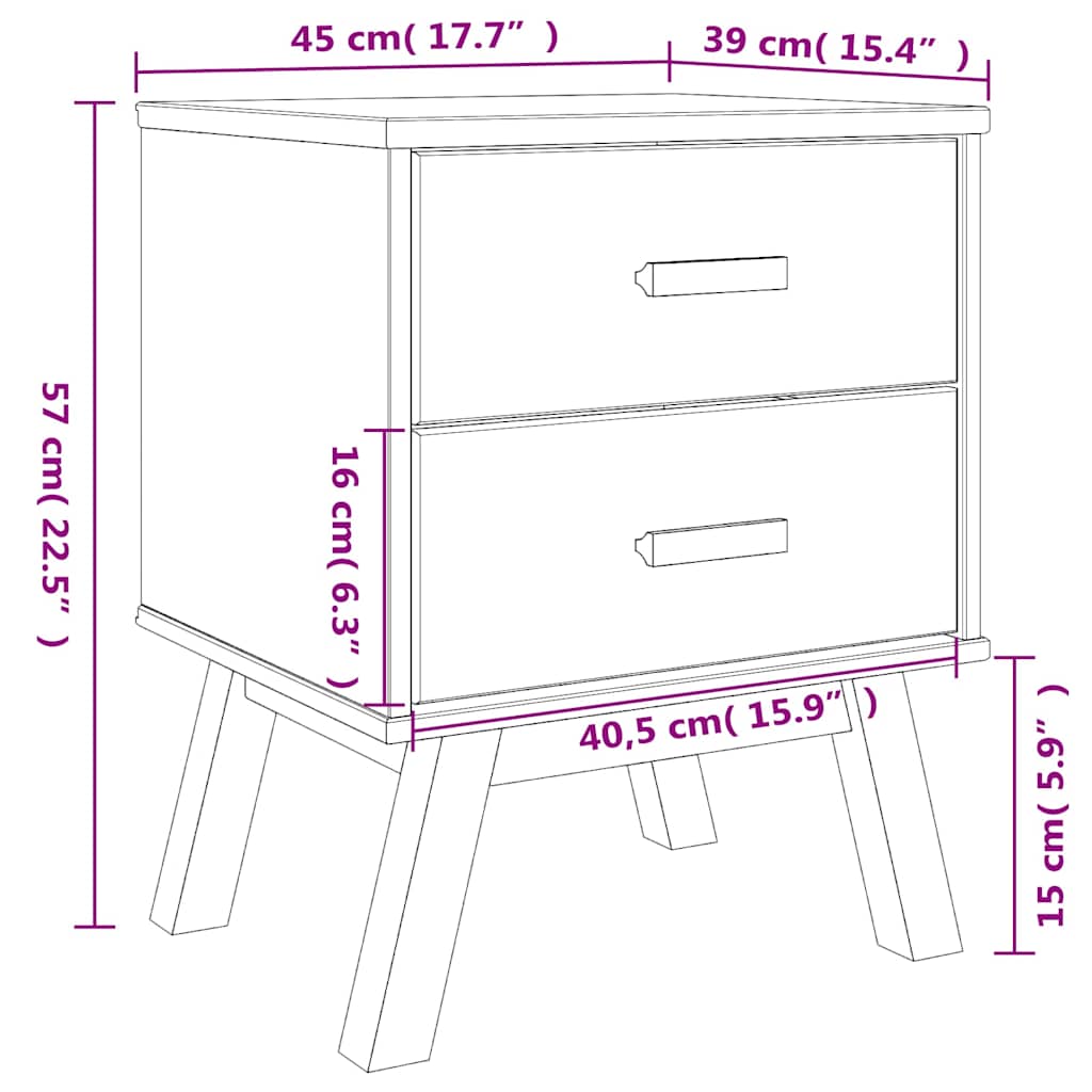 Mesa de cabeceira OLDEN madeira de pinho maciça cinza/castanho